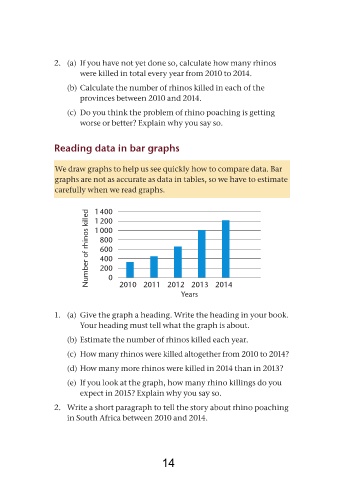 (c) How many rhinos were killed altogether from 2010 to 2014?