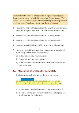 (a) Kholeka says the blue bar is 4 cm long. Is she correct?