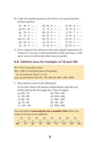 (a) 18 − 9 = . . . (b) 18 − 8 = . . . (c) 18 − 6 = . . .