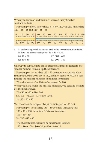 For example, to calculate 160 − 70 you may ask yourself what