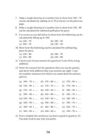 (v) 160 − 90 = . . . (w) 160 − 60 = (x) 150 − 70 = . . .