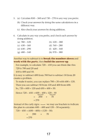 5. (a) Calculate 850 − 360 and 730 − 270 in any way you prefer.