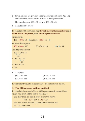 To calculate 458 + 276 you may break down the numbers and