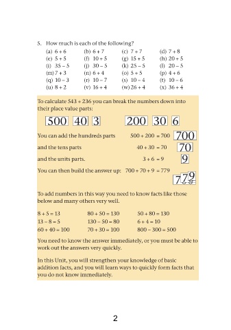 To calculate 543 + 236 you can break the numbers down into