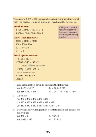 To calculate 3 465 + 4 574 you can break both numbers down, work