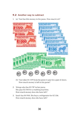 (b) Vusi takes R1 359 from his purse to pay for a pair of shoes.