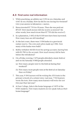 1. While practising, an athlete ran 5 253 m on a Saturday and