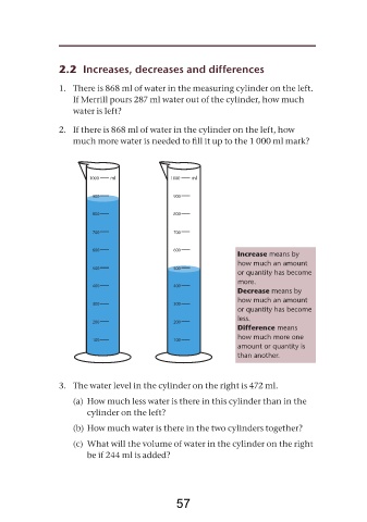 1. There is 868 ml of water in the measuring cylinder on the left.