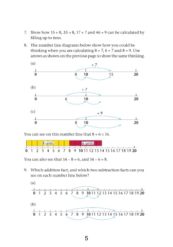 7. Show how 15 + 8, 35 + 8, 17 + 7 and 46 + 9 can be calculated by